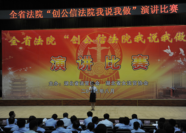“创公信法院我说我做” 演讲比赛,是省法官协会和女法官协会为紧密配合年初省法院党组在全省法院开展 “当公正法官、办公正案件、创公信法院”的活动安排部署的。汉江中院对该项活动十分重视,两级法院分别举办了预赛,在此基础上,汉江中院又举办了选拔赛,将获得两级法院演讲比赛一等奖的优秀选手推荐参加全省法院决赛。