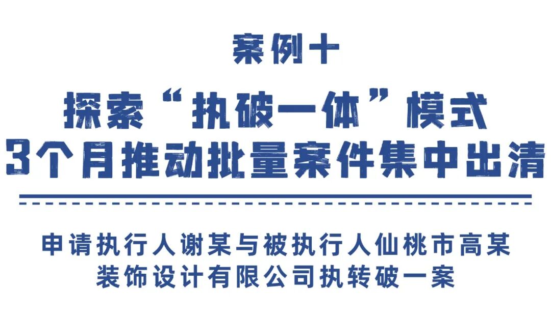 仙桃市某装饰设计有限公司陷入债务危机,停止经营,相继有11名当事人持判决书向仙桃市法院申请强制执行,该公司属于典型的“僵尸企业”。 经关联案件检索及网络查控,确认该公司无可供执行财产且法定代表人下落不明,部分关联案件已终本,执行程序无法实现债权。仙桃市法院遂与11名债权人积极沟通,引导其申请破产清算。 2025年4月,仙桃市法院受理破产申请后,由执行法官会同精通破产案件审理的法官组成“执破一体”专班,联合推进该案办理。 根据执行阶段查明的法定代表人未足额缴纳出资的情况,“执破一体”工作专班依法适用破产程序股东出资加速到期的规定,引导管理人向法定代表人发送追缴出资通知,并向仙桃市法院提起诉讼,追究法定代表人出资不实责任。 同时,依据《仙桃市人民法院企业破产援助专项资金管理和使用办法》的规定,由管理人向市法院申请破产援助专项资金,有效破解“无产可破”案件推进难题。 2025年7月,仙桃市某装饰设计有限公司破产清算程序历时仅3个月即顺利结案,多件涉企“执行不能”案件实现了集中出清。